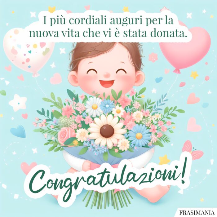 I più cordiali auguri per la nuova vita che vi è stata donata. Congratulazioni!