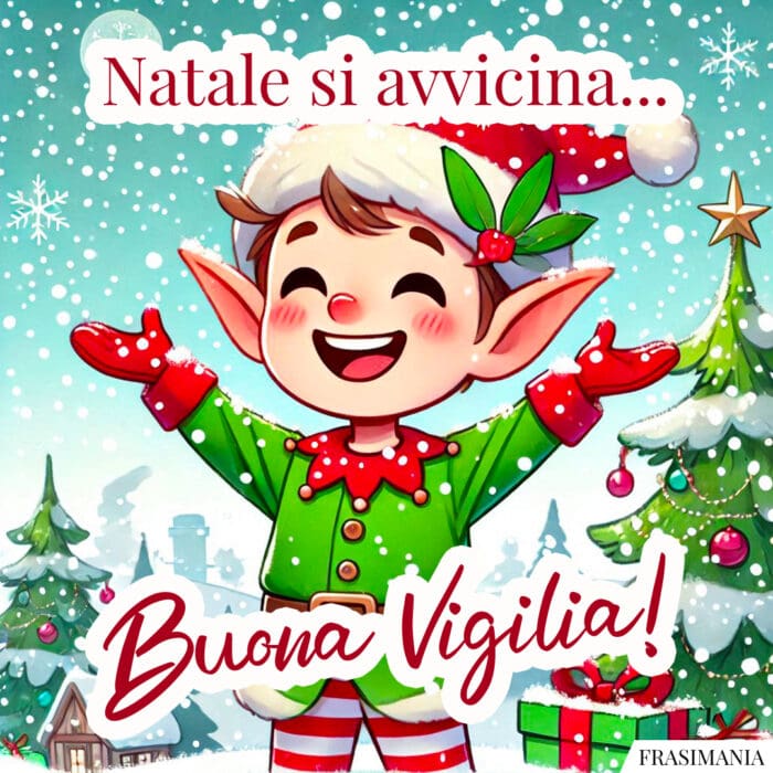 - Aspettando l’arrivo della magia di Natale, possano questi giorni portarti la pace e il calore delle feste. Ti auguro una gioiosa Vigilia di Natale.