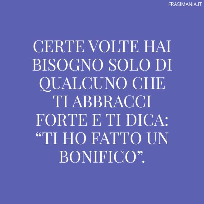 Certe volte hai bisogno solo di qualcuno che ti abbracci forte e ti dica: “Ti ho fatto un bonifico”.