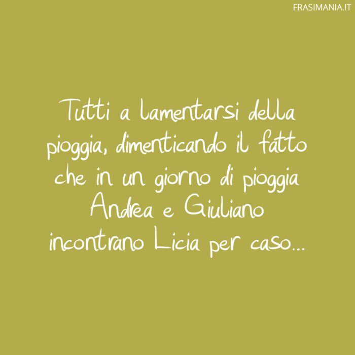 Tutti a lamentarsi della pioggia, dimenticando il fatto che in un giorno di pioggia Andrea e Giuliano incontrano Licia per caso…