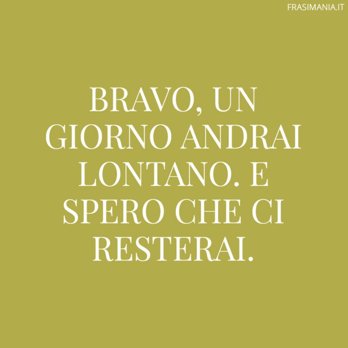 Bravo, un giorno andrai lontano. E spero che ci resterai.