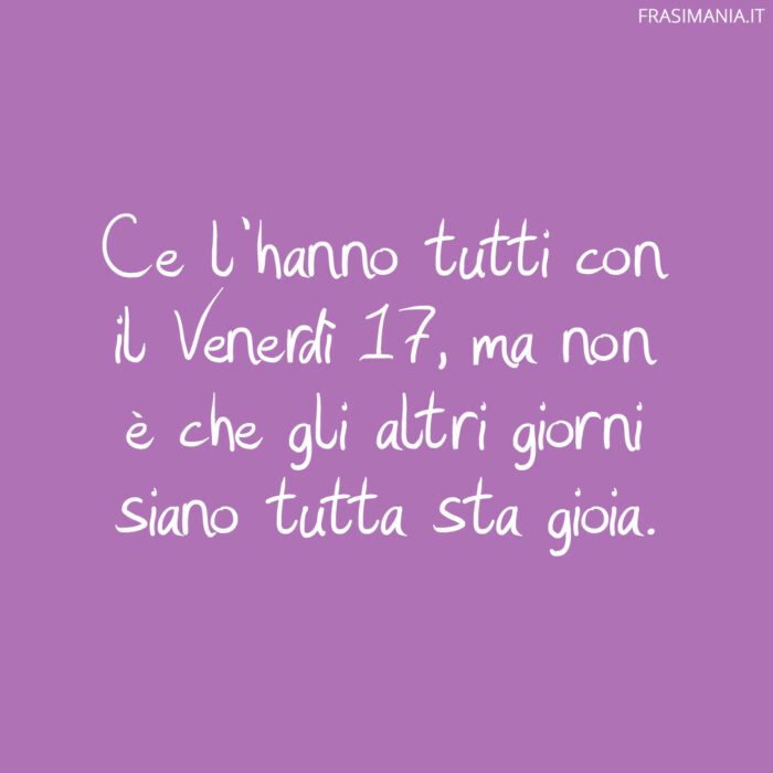 Ce l’hanno tutti con il Venerdì 17, ma non è che gli altri giorni siano tutta sta gioia.